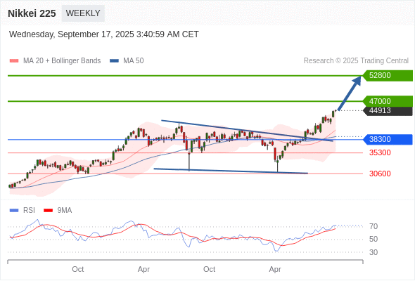 Nikkei 225 中期: 进一步上涨。