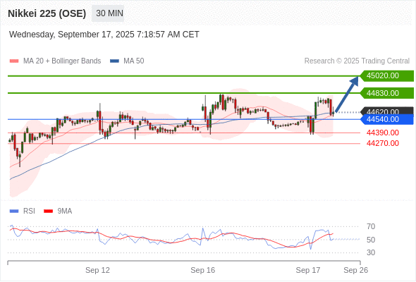 在 44540.00 之上,看涨,目标价位为 44830.00 ,然后为 45020.00 。