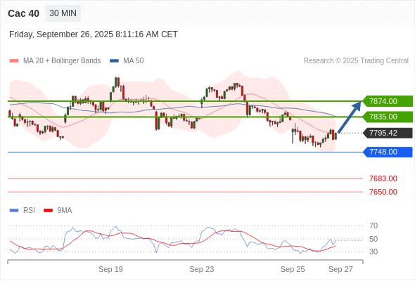Cac 40 当日内: 超短线(当日内)支撑位在7748.00附近。