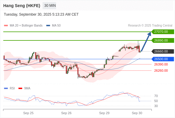 交易策略: 在 26500.00 之上,看涨,目标价位为 26890.00 ,然后为 27070.00 。