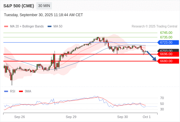 在 6723.00 之下,看跌,目标价位为 6696.00 ,然后为 6680.00 。