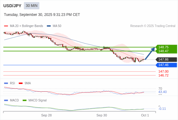 美元/日元 当日内 : 有上涨的可能,目标价位定在 148.75 。