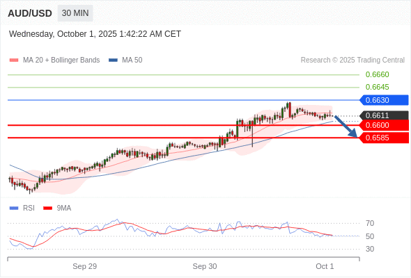 交易策略: 在 0.6630 之下,看跌,目标价位为 0.6600 ,然后为 0.6585 。