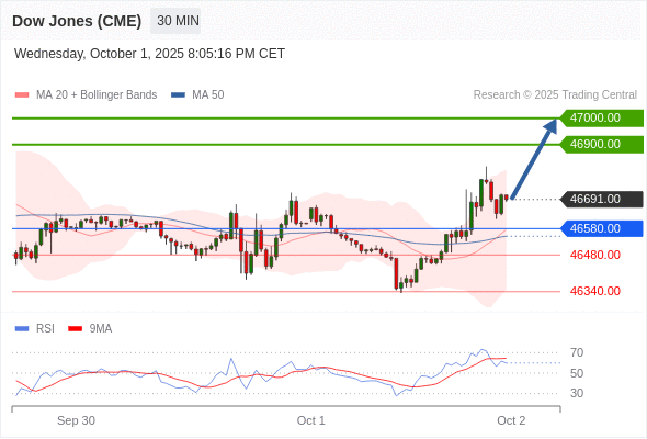 在 46580.00 之上,看涨,目标价位为 46900.00 ,然后为 47000.00 。