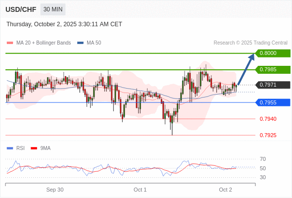 在 0.7955 之上,看涨,目标价位为 0.7985 ,然后为 0.8000 。