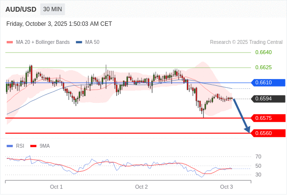 在 0.6610 之下,看跌,目标价位为 0.6575 ,然后为 0.6560 。