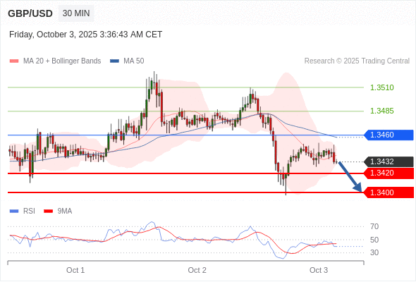在 1.3460 之下,看跌,目标价位为 1.3420 ,然后为 1.3400 。