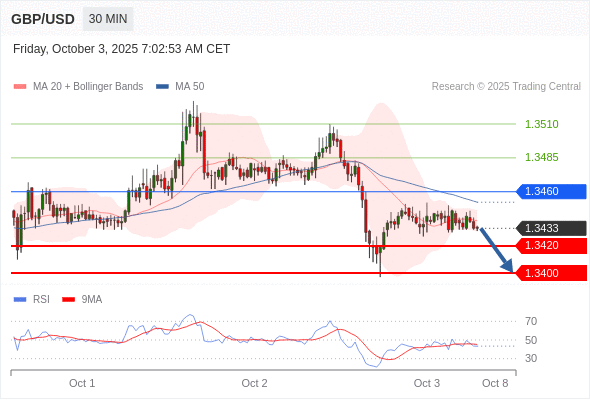 英镑/美元 当日内: 朝1.3400运行。