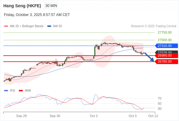 在 27310.00 之下,看跌,目标价位为 26980.00 ,然后为 26780.00 。