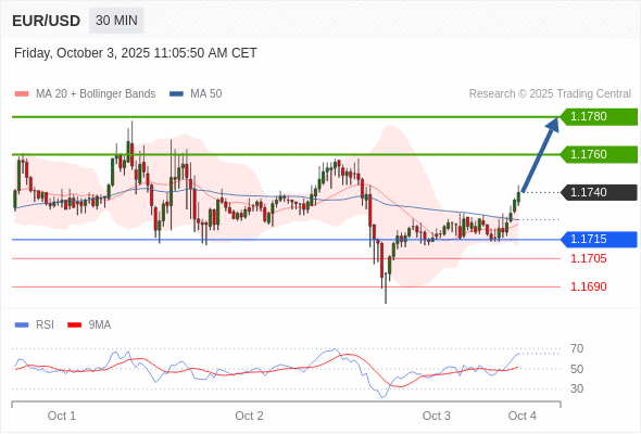 在 1.1715 之上,看涨,目标价位为 1.1760 ,然后为 1.1780 。