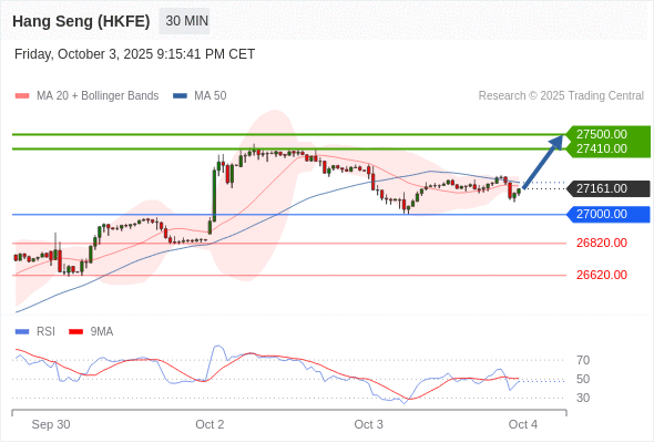 在 27000.00 之上,看涨,目标价位为 27410.00 ,然后为 27500.00 。