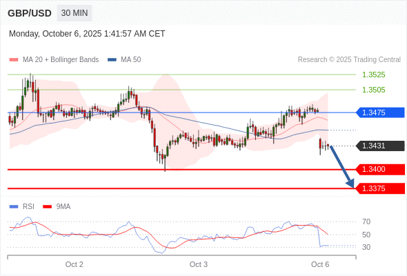 在 1.3475 之下,看跌,目标价位为 1.3400 ,然后为 1.3375 。