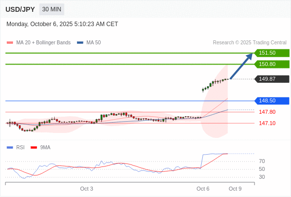 在 148.50 之上,看涨,目标价位为 150.80 ,然后为 151.50 。