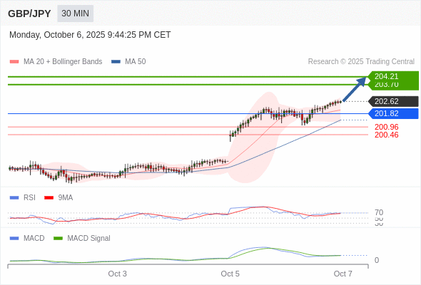备选策略: 如跌破 201.82 ,GBP/JPY 目标方向定在 200.96 和 200.46 。