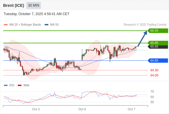 在 64.85 之上,看涨,目标价位为 65.85 ,然后为 66.55 。