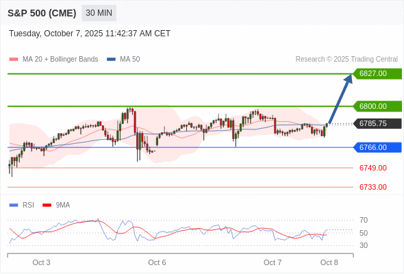 在 6766.00 之上,看涨,目标价位为 6800.00 ,然后为 6827.00 。