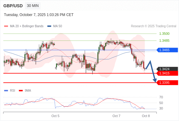在 1.3465 之下,看跌,目标价位为 1.3415 ,然后为 1.3395 。