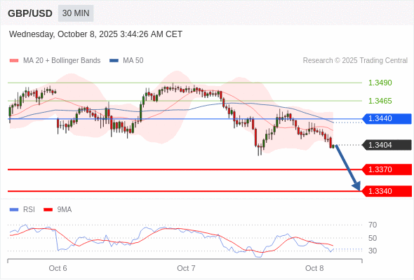在 1.3440 之下,看跌,目标价位为 1.3370 ,然后为 1.3340 。