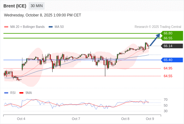 在 65.40 之上,看涨,目标价位为 66.55 ,然后为 66.80 。