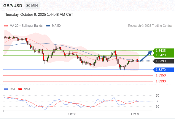 在 1.3370 之上,看涨,目标价位为 1.3420 ,然后为 1.3435 。