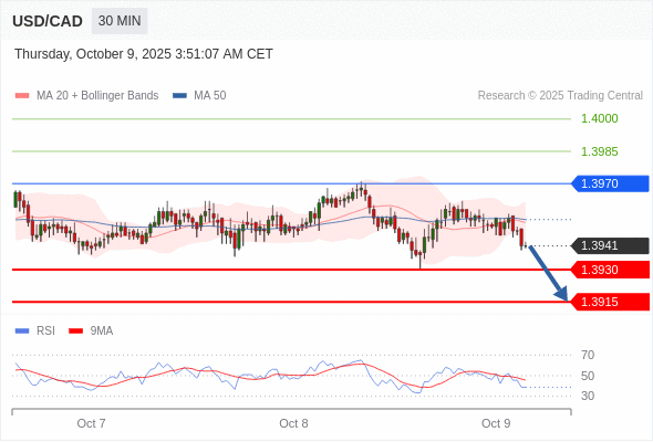 在 1.3970 之下,看跌,目标价位为 1.3930 ,然后为 1.3915 。