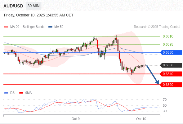 在 0.6580 之下,看跌,目标价位为 0.6540 ,然后为 0.6520 。