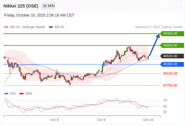 在 48380.00 之上,看涨,目标价位为 48950.00 ,然后为 49300.00 。