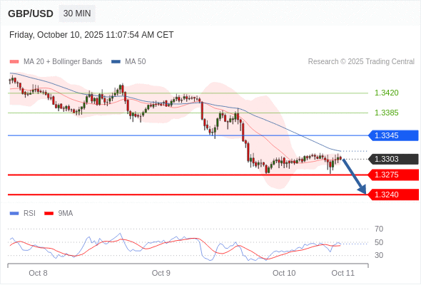 在 1.3345 之下,看跌,目标价位为 1.3275 ,然后为 1.3240 。