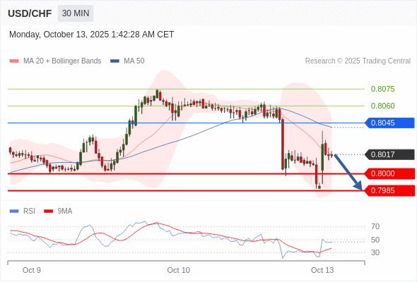 在 0.8045 之下,看跌,目标价位为 0.8000 ,然后为 0.7985 。