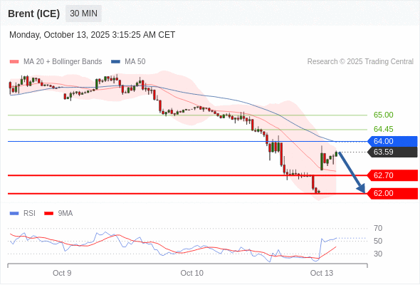 交易策略: 在 64.00 之下,看跌,目标价位为 62.70 ,然后为 62.00 。