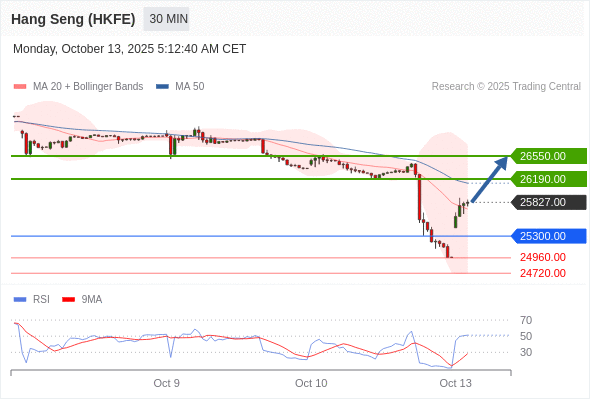 在 25300.00 之上,看涨,目标价位为 26190.00 ,然后为 26550.00 。