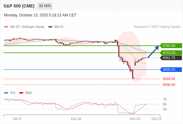 在 6605.00 之上,看涨,目标价位为 6715.00 ,然后为 6762.00 。