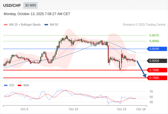 在 0.8040 之下,看跌,目标价位为 0.7985 ,然后为 0.7965 。