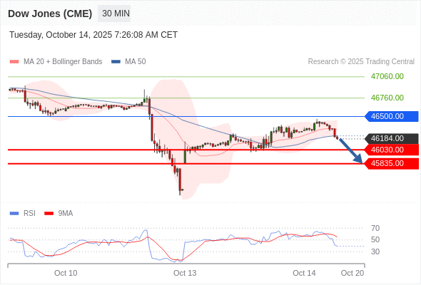 在 46500.00 之下,看跌,目标价位为 46030.00 ,然后为 45835.00 。