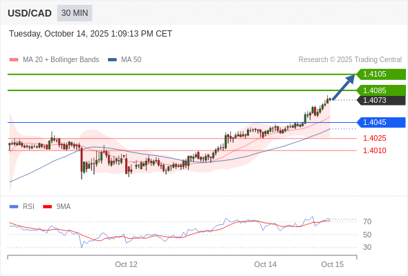 在 1.4045 之上,看涨,目标价位为 1.4085 ,然后为 1.4105 。