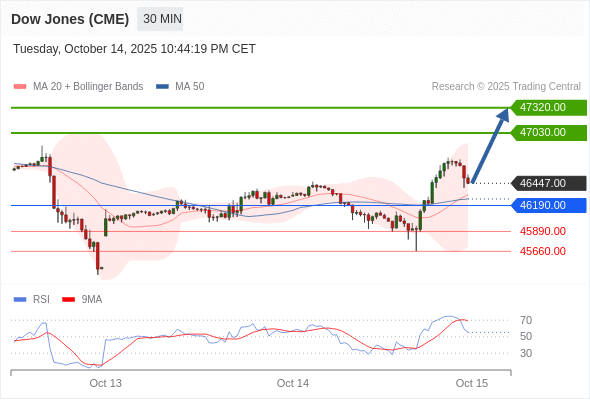 在 46190.00 之上,看涨,目标价位为 47030.00 ,然后为 47320.00 。
