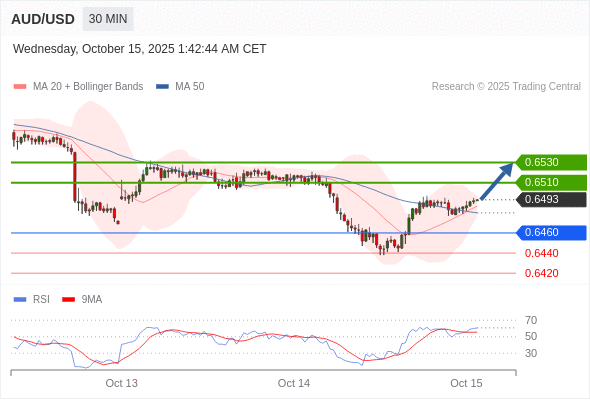 在 0.6460 之上,看涨,目标价位为 0.6510 ,然后为 0.6530 。