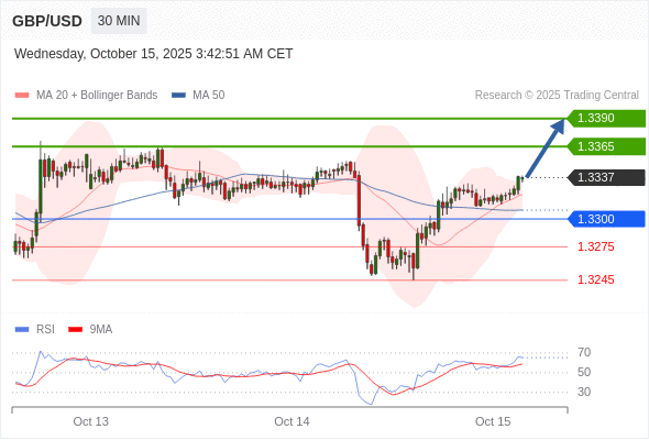 在 1.3300 之上,看涨,目标价位为 1.3365 ,然后为 1.3390 。