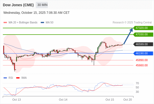 在 46190.00 之上,看涨,目标价位为 47030.00 ,然后为 47320.00 。