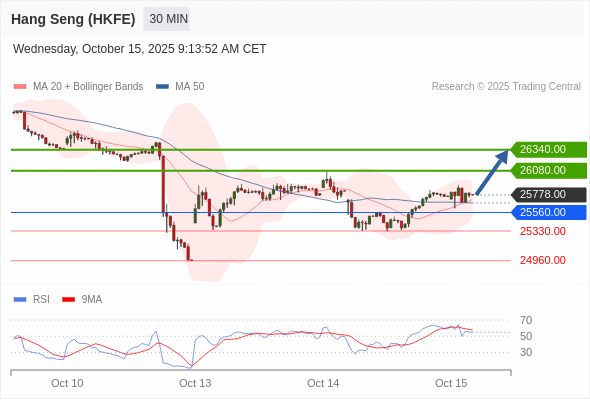 交易策略: 在 25560.00 之上,看涨,目标价位为 26080.00 ,然后为 26340.00 。