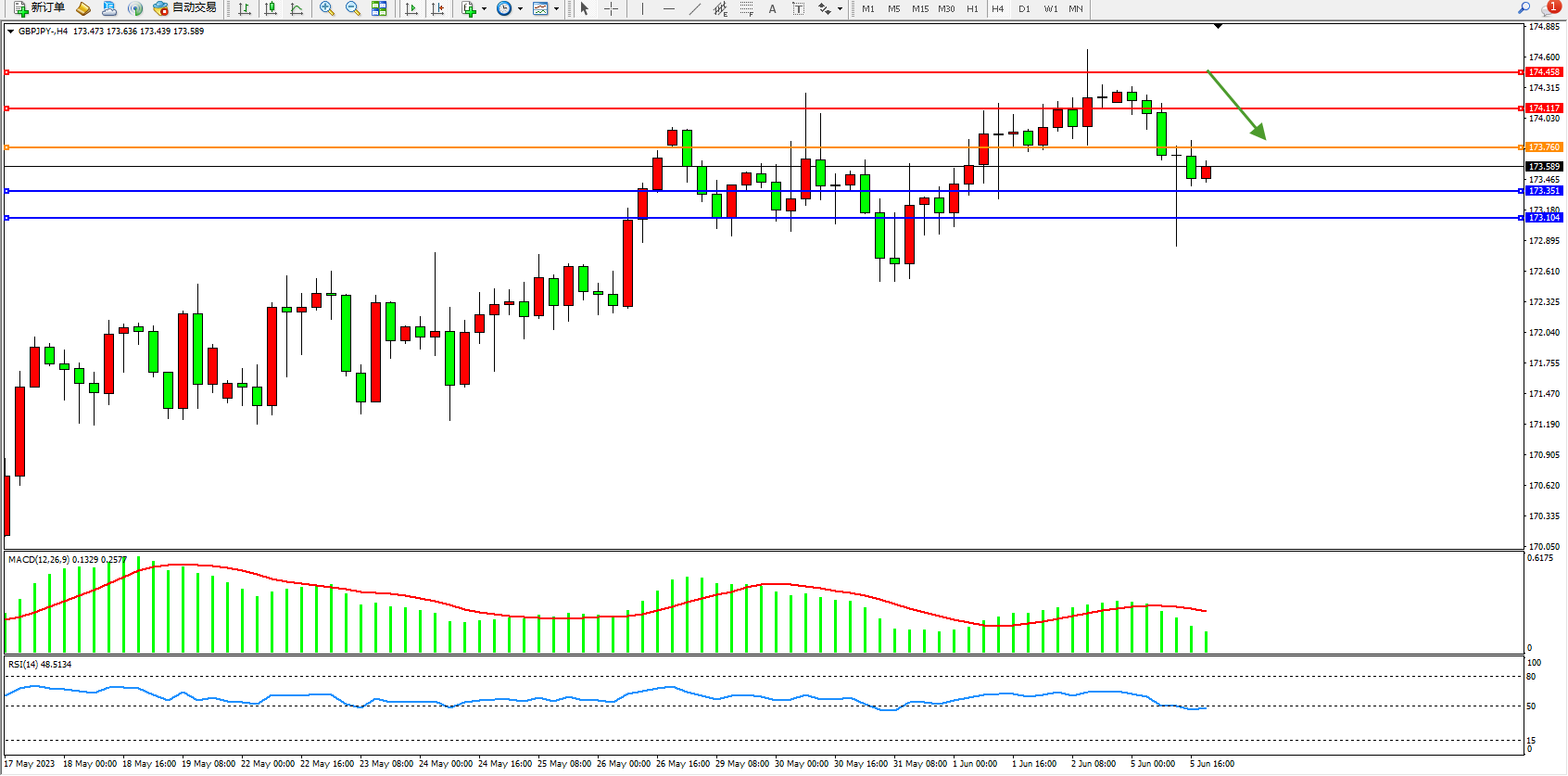 4小时图看:空头动力持续震荡下移,短期跌势或将延续,市场整体处于偏空头情绪中,MACD指标维持震荡下移,RSI指标处于50均衡线下侧弱势徘徊;