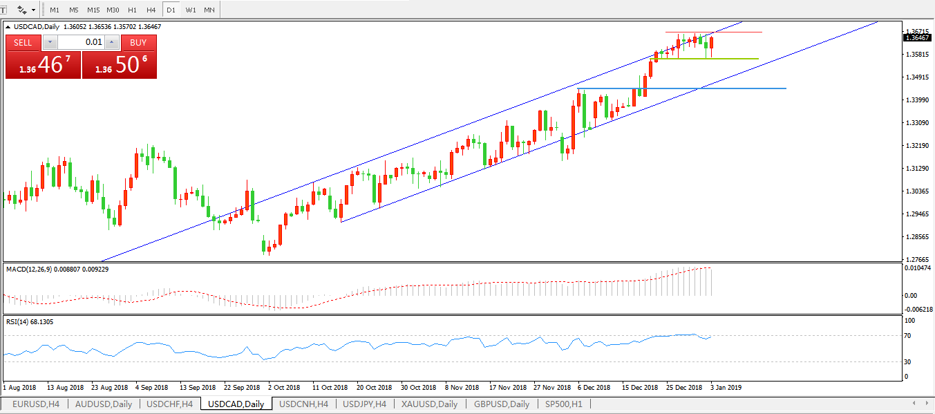 交易策略: 在1.3563之上,看涨,目标价位为1.3660,然后为1.3715。