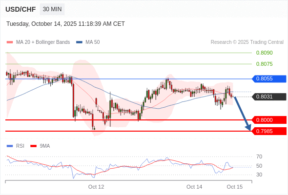 在 0.8055 之下,看跌,目标价位为 0.8000 ,然后为 0.7985 。