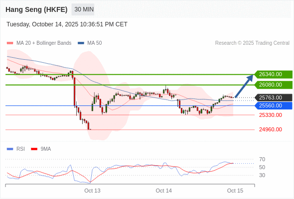 香港恒生指数期货 当日内: 超短线(当日内)支撑位在25560.00附近。